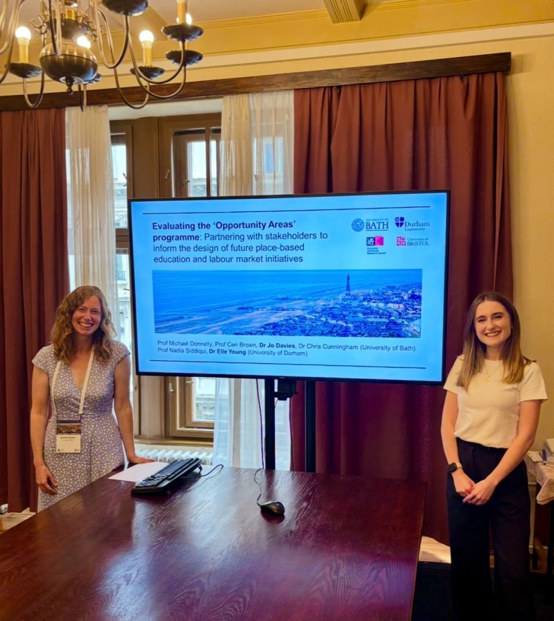 At the start of September, Dr Elle Young and Dr Jo Davies had the privilege of presenting our preliminary findings from the ‘From the Centre to the Periphery‘ project at the European Conference on Educational Research (ECER 2025) in Belgrade, Serbia. This was a valuable opportunity to share the early stages of our work evaluating the Department for Education’s Opportunity Areas programme (2017-2022), which aimed to improve life chances for young people in 12 social mobility ‘cold spots’ across England.
